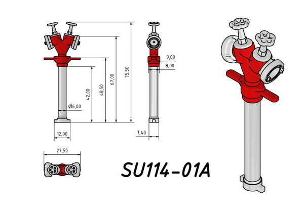 Hydrantenstandrohr Standrohr für Unterflurhydranten 1:16 1:14 3D Druck